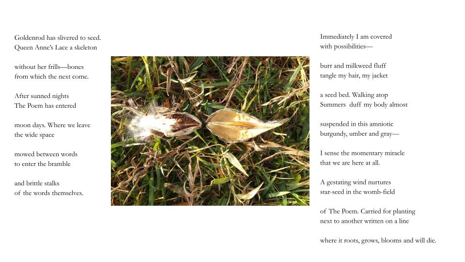 The meadow that began as a bursting yellow field of goldenrod is now silver and seed.